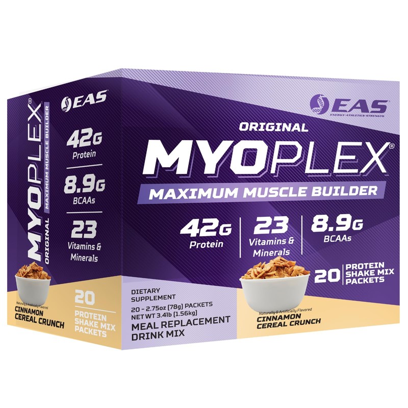 EAS Original Myoplex Maximum Muscle Builder, Meal Replacement Protein Drink Mix | Quality Protein Blend | 42g Protein | 20 Individual Packet (Cinnamon Cereal Crunch)
