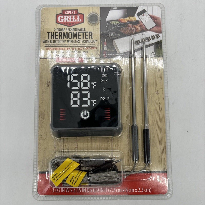 Expert Grill Digital Bluetooth Rechargeable Meat Thermometer~ 2-Probe