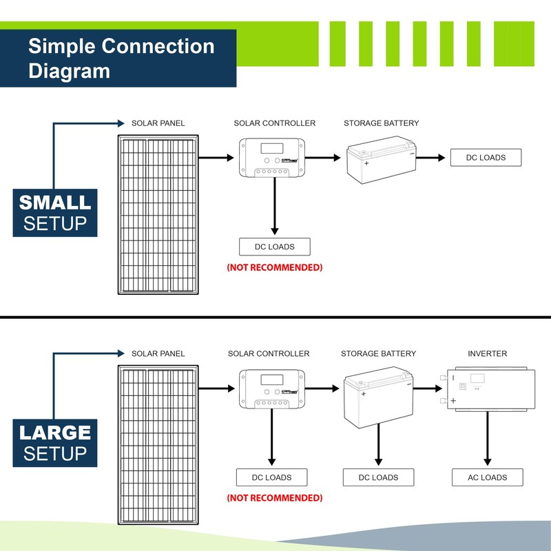 - This kit includes one 100W Monocrystalline Solar Panel and one 10A PWM Solar Charge Controller, one pair of 10ft 12AWG MC4 Solar Cables, one pair of 6ft 12AWG Battery Cables, and one set of Solar Panel Mounting Brackets.
