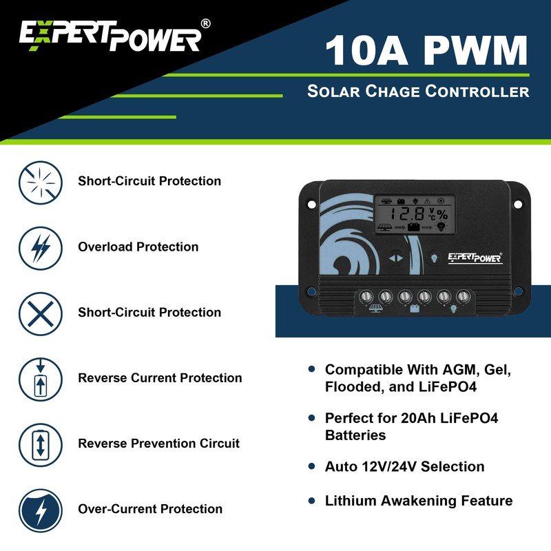 - AGM and LiFePO4 Compatible: A match made with ExpertPower AGM/GEL Batteries (sealed lead acid) and LiFePO4 Batteries (lithium iron phosphate). Also compatible with flooded batteries and ternary lithium batteries.