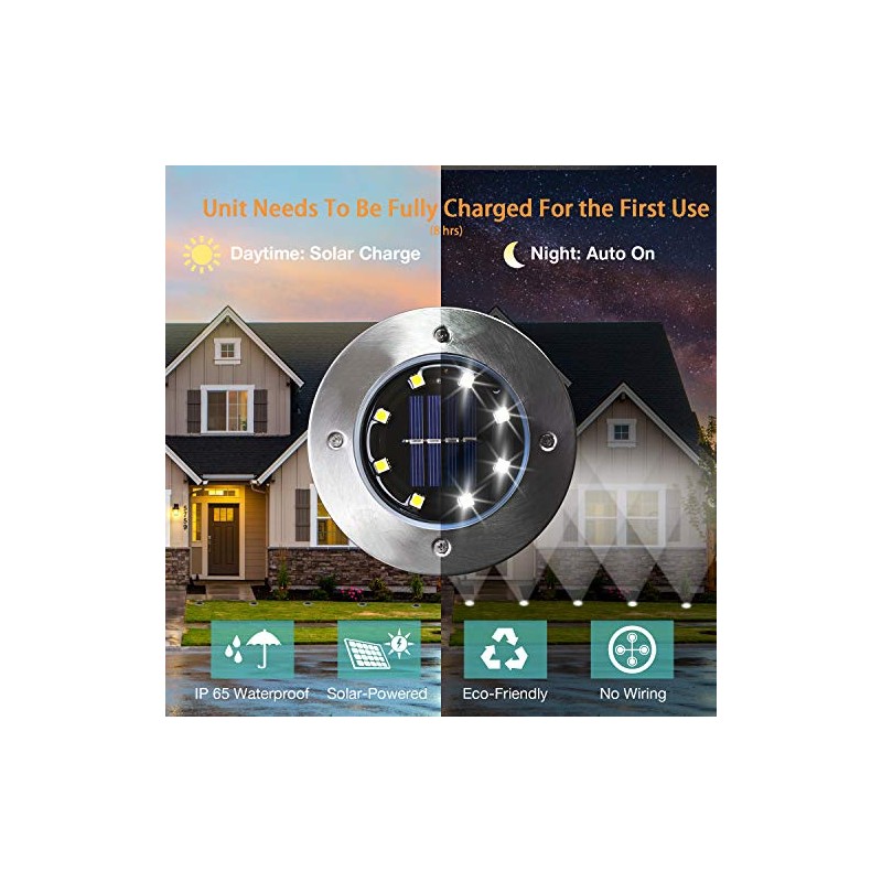 • Brighter and Better [Upgrade]: Unlike conventional 4-lights setting, these solar powered lights are equipped with 8-LEDs to shine brighter at night.