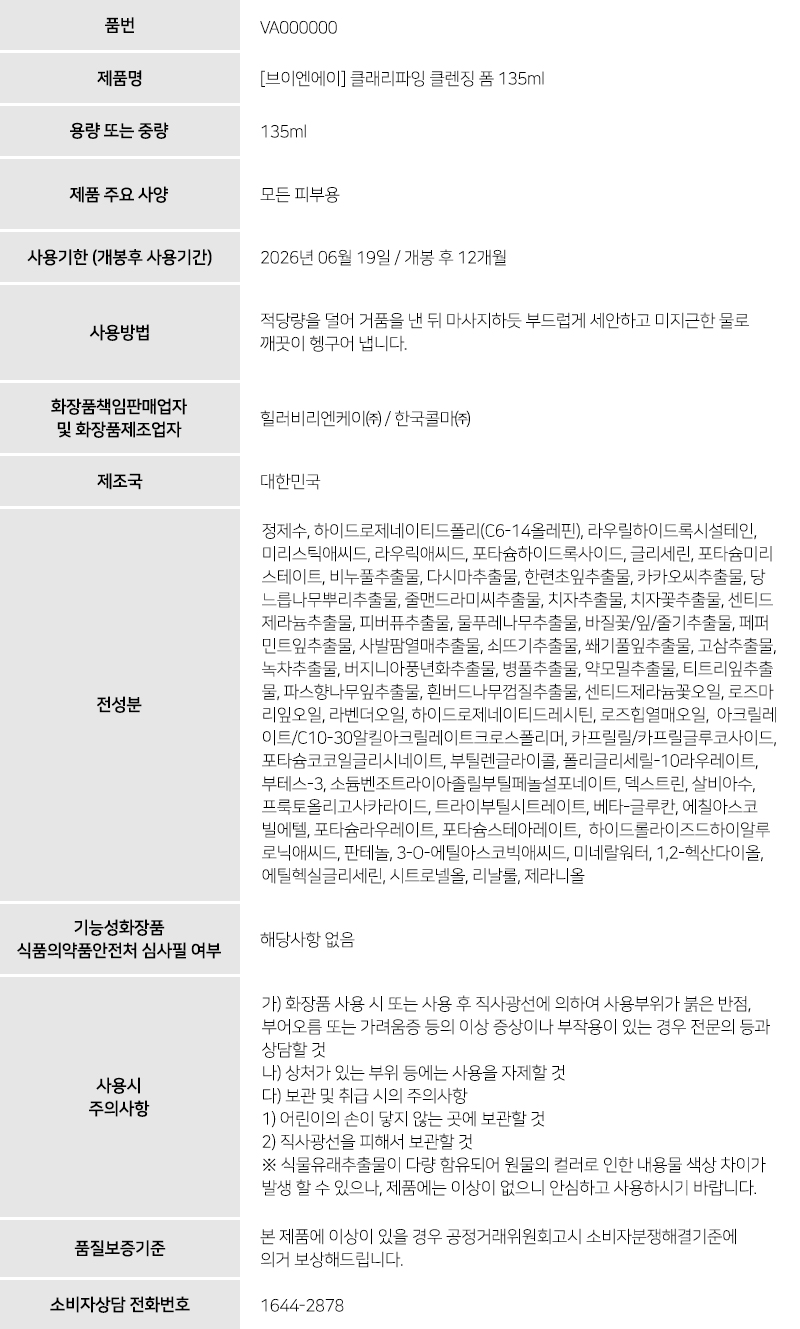 유통기한 26.06.19VA클래리파잉 클렌징 폼 135ml (+앰플크림 1.5m