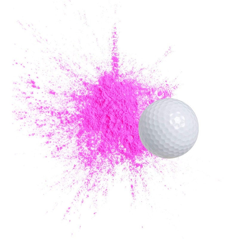 - Our gender reveal golf ball sets include 2 exploding golf balls (2 Pink Balls). Each ball is filled to the very top with vibrant pink or blue powder to ensure the largest explosion for your baby gender reveal. The balls are marked with either a removable pink or blue sticker to indicate the color of the powder within the golf ball.