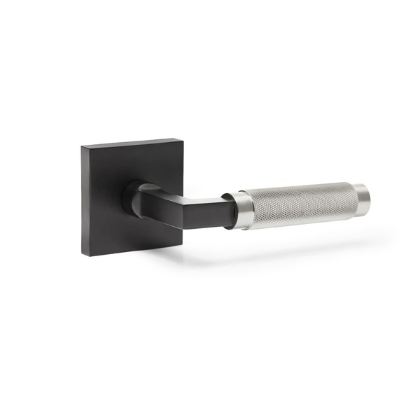 Explore Hardware New York Model Solid Brass Lever Hallway & Closet Passage Door Handle, Matte Black with Satin Silver