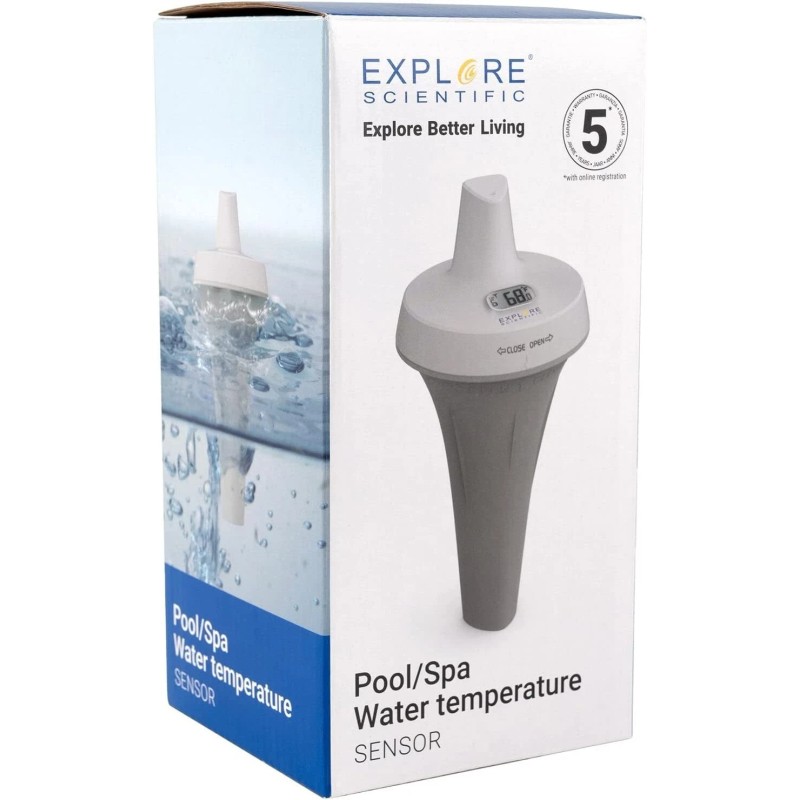 Features Floating sensor for pools, jacuzzis etc. IPX7 waterproof rating LCD temperature display (°C/°F) Operating temperature range -5°C ~ 60°C ( -23°F ~ 140°F) not recommended for use in frosty conditions Power supply: 2x AA batteries (not included) Water temperature can be read on the weather center display 7 available channels for transmitting measurements Range of up to 30 m (100 ft.) Compatible with the Explore Scientific Weather Station Description In combination with the optional Professional 7-in-1 Wi-Fi weather station, you can monitor the temperature of your swimming pool or jacuzzi remotely from your living room. The pool sensor transmits the measured water temperature to the weather centre base station up to a range of 30 m. Manual Download Manual Here  Compatible with:  Explore Scientific 5-in-1 Weather Sensor Professional Weather Station with WiFi Explore Scientific 7-in-1 Weather Sensor Professional Weather Station with WiFi  CA Residents: Prop 65 WARNING(S)