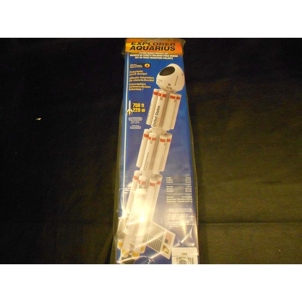 - The Explorer Aquarius is a master level kit that features a custom jig for perfect alignment assembly. Launched with an Estes D12-5 engine (not included), the Explorer Aquarius can fly higher than 700 feet! Youll want to proudly display this show piece when its not on the launch pad, so weve included a removable plastic display engine nozzle for the complete effect.