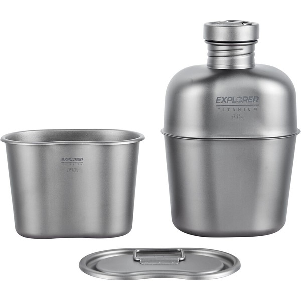 Explorer Bear Black Titanium Canteen Set, 1100ml + 700ml Cup with Carrying Bag