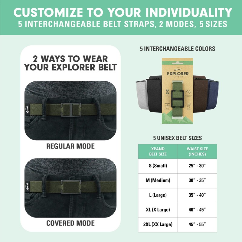 - MOVE SMARTER: The Xpand Explorer Belt is airport friendly and perfect for travel. It will bend, jump and move with you for any sport or outdoor adventure. It is the go-to hiking belt, rachet belt replacement, or anything in-between.