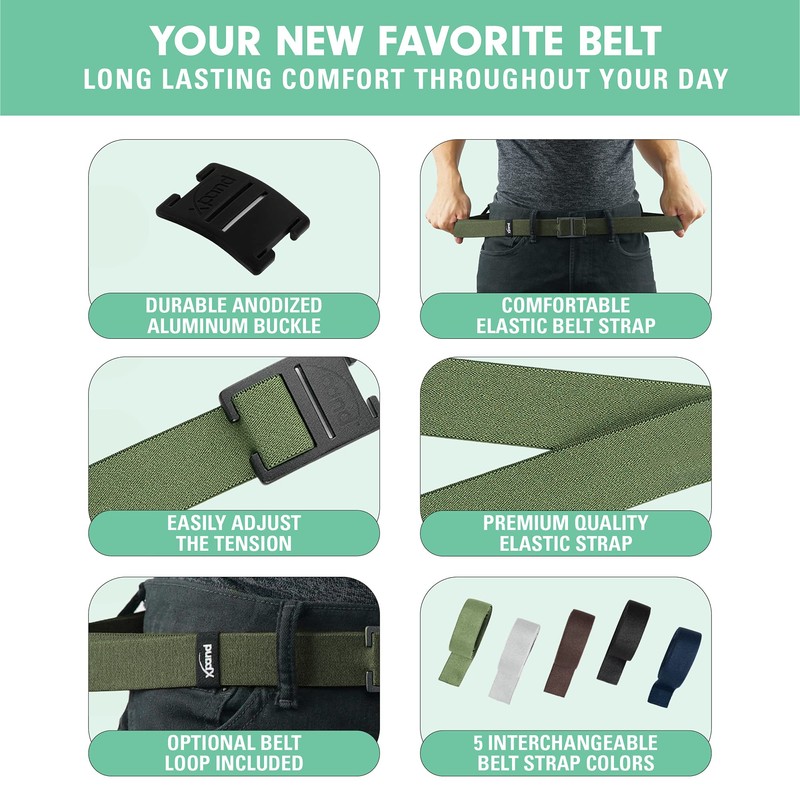 - STRETCHY ELASTIC BELT STRAP: No one likes a belt strap that digs into the waist, or requires constant adjustment before and after sitting down. Our Xpand straps feature the perfect amount of stretch to provide you a snug fit comfort around your waist, designed to help you move smarter. No Pain – No Nuisance.