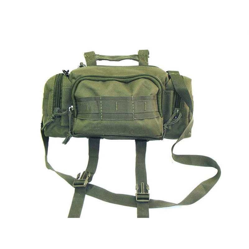 This tactical gear deployment bag is very cool with tons of features. Molle Style webbing system with 3 zipper pockets and 1 main compartment to bring your daily necessities. Detachable/Adjustable shoulder strap and buckle compression straps for easy carry.