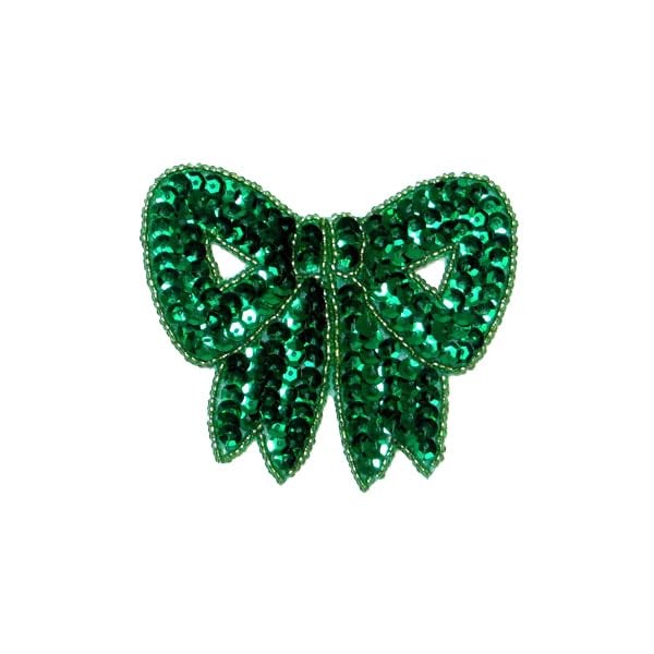 Expo International 3 1/4" x 3" Bow Sequin Patches/Appliques, Kelly Green