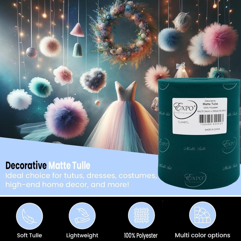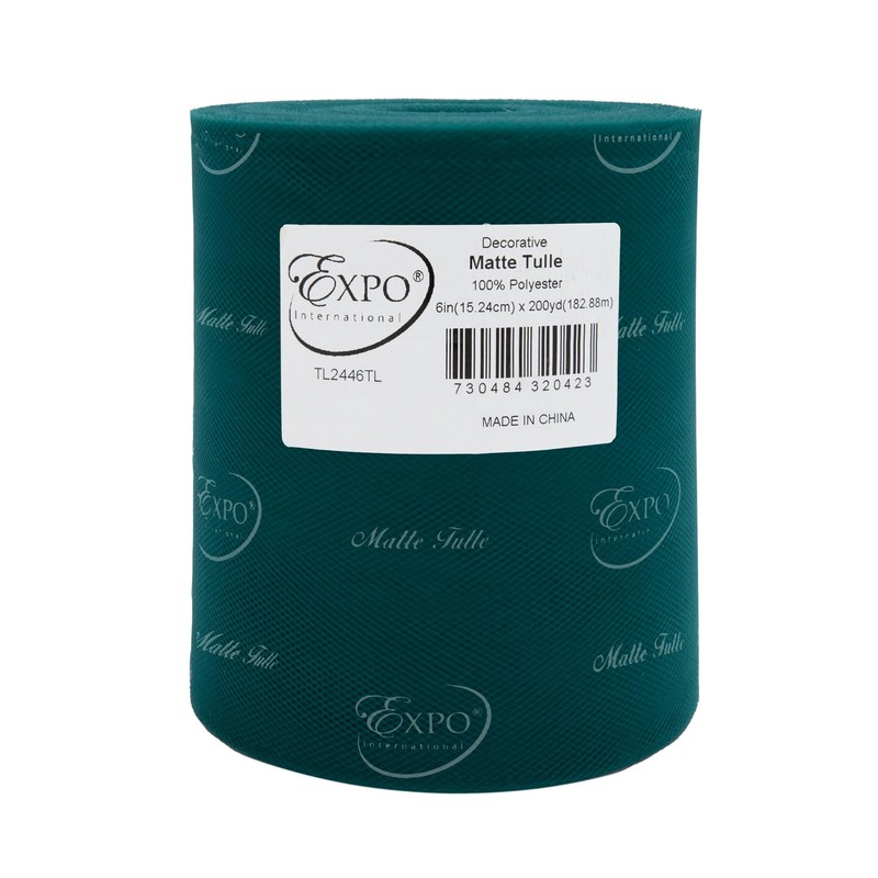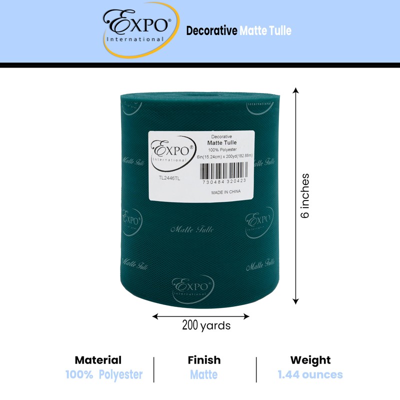 Expo International Decorative Matte Tulle, Roll/Spool of 6” X 200 Yards, Lightweight Polyester Tulle Fabric for Tutus, Costumes, and Party Decorations, Washable, Easy-to-Use, Teal