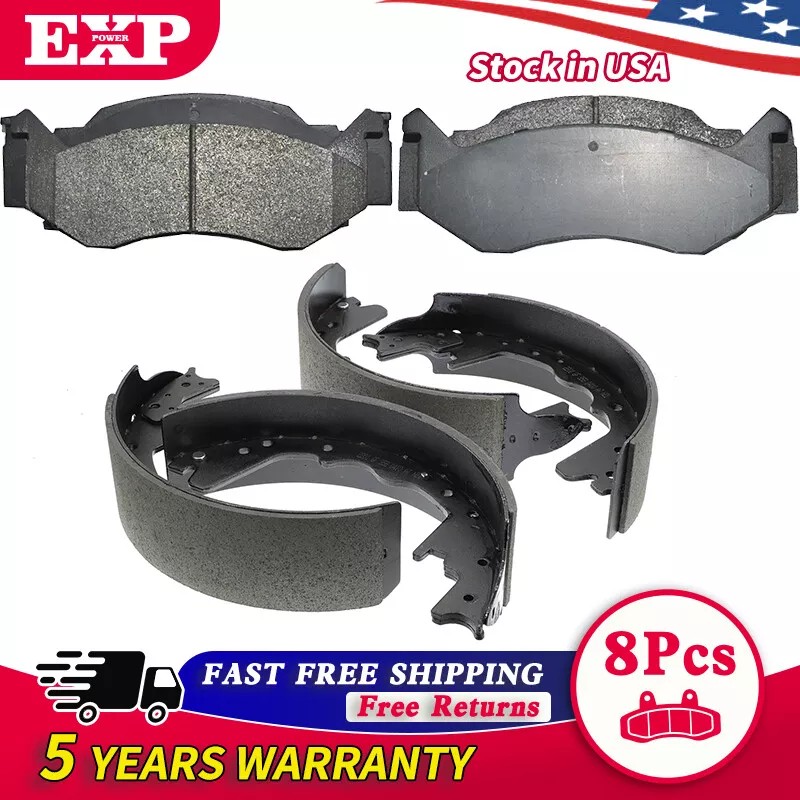 EXPPOWER Front Rear Semi-Metallic Brake Pads Drum Shoe Kit For Dodge D150 B250 D250 B2500