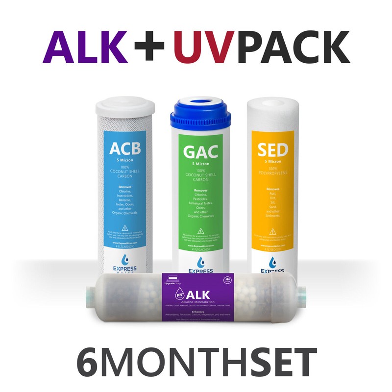 Express Water 6 Month Alkaline Ultraviolet Reverse Osmosis Replacement Filter Set – 4 Filters