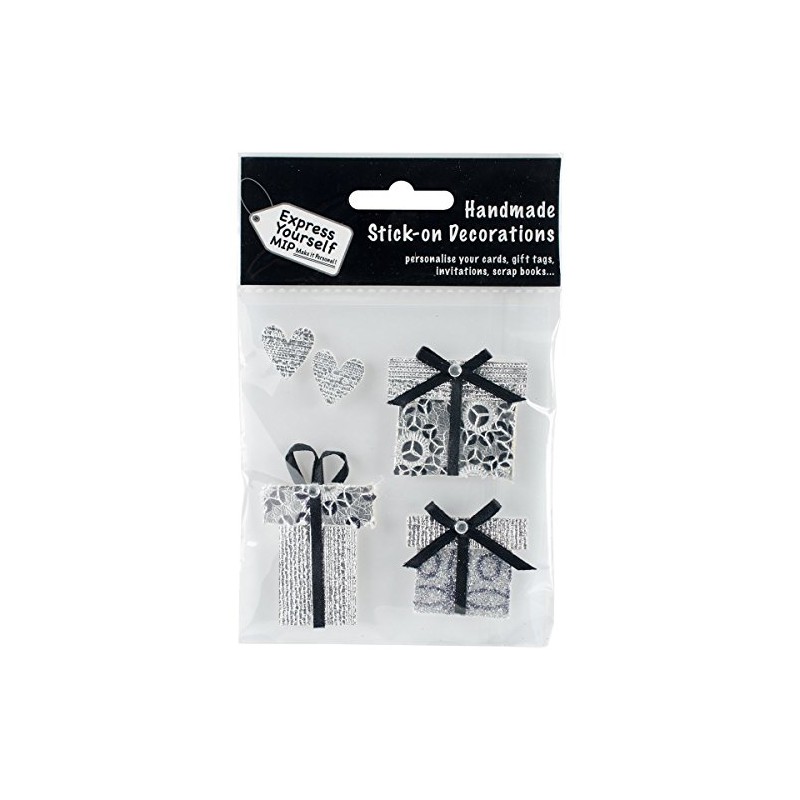 Express Yourself MIP MIP 3D Stickers Silver Gift Boxes and Hearts, Acrylic, Multicoloured, 0.09 x 3.9 x 5.9 cm