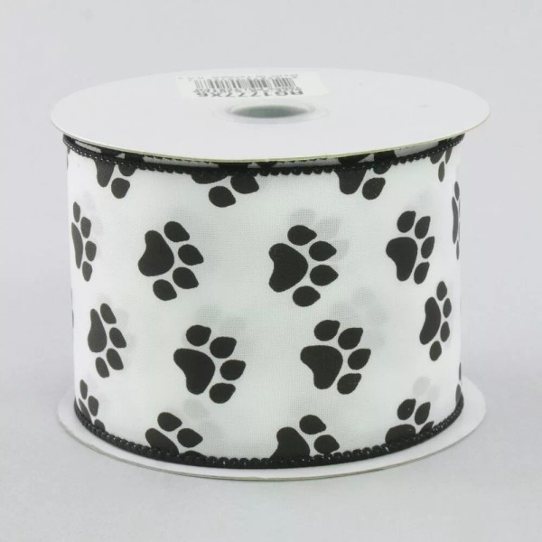 This listing is for ONE Brand New ROLL of Expressions White Satin with BLACK Paw Prints 2.5" Ribbon. It is 30 Feet (10 Yards).