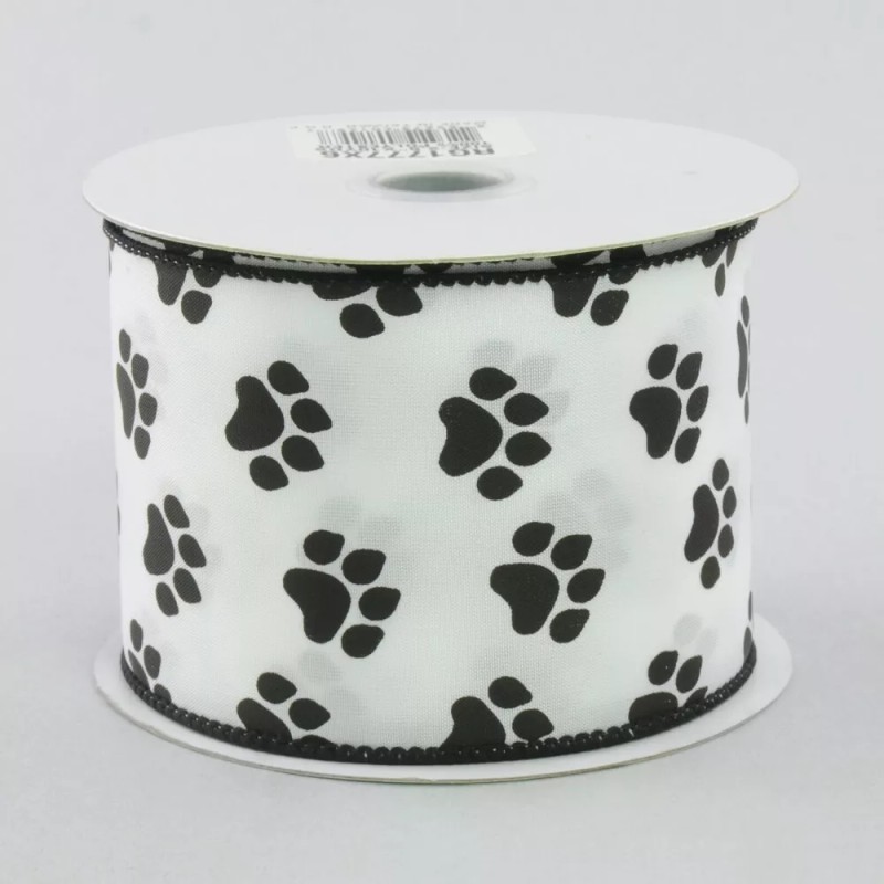 Expressions 10 Yards Pawprint Paw Print Dog Cat Black White Wired Ribbon 2 1/2"W 30 Ft Roll