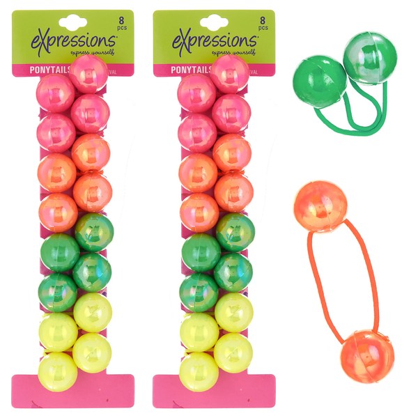 - Juego de 16 piezas: el paquete de accesorios para el cabello Expressions incluye 16 lazos para el pelo de bola de caballo para niñas. Estas duraderas bolas de cola de caballo de doble cuenta vienen en elegantes colores neón, incluyendo rosa, naranja, verde y amarillo.