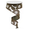 Expressions Brown Ribbon White Paw Prints & Bones 1.5" Paw Print Wired 10 Yard Roll 1 1/2"