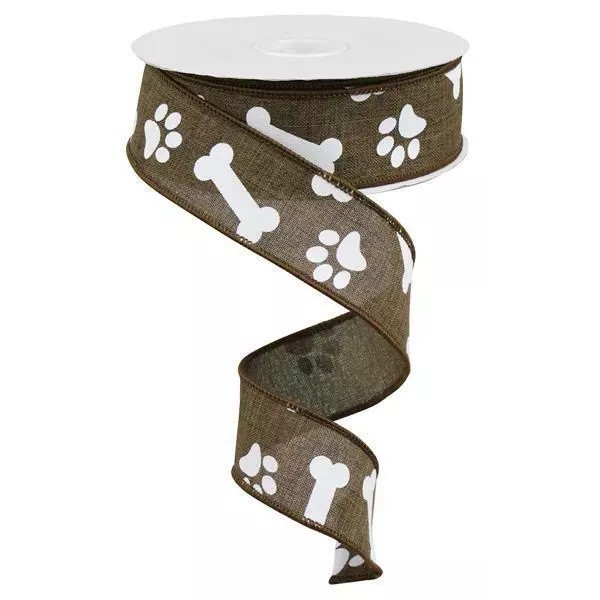 This listing is for ONE Brand New Roll of this High Quality Brown with White Paw Prints & Dog Bones Wired Ribbon. It is 30 Feet (10 Yards) of 1.5" Ribbon.