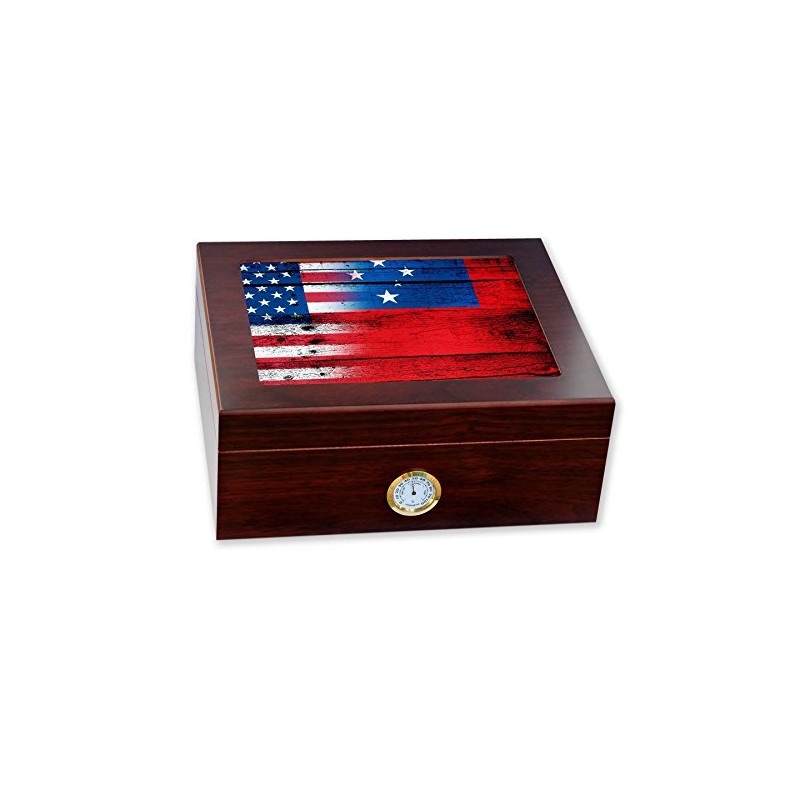 ExpressItBest Premium Desktop Humidor - Glass Top - Flag of American Samoa (Samoan) - Wood with USA Flag - Cedar lined with humidifier & front mounted hygrometer.