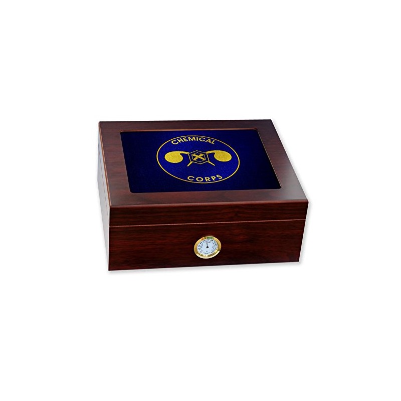ExpressItBest Premium Desktop Humidor - Glass Top -US Army Chemical Corps, branch plaque