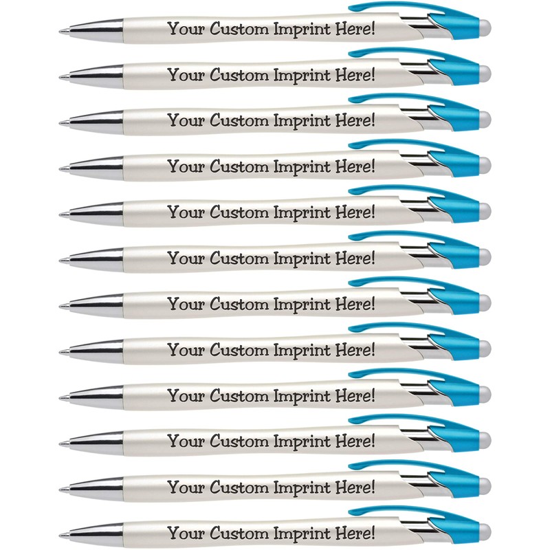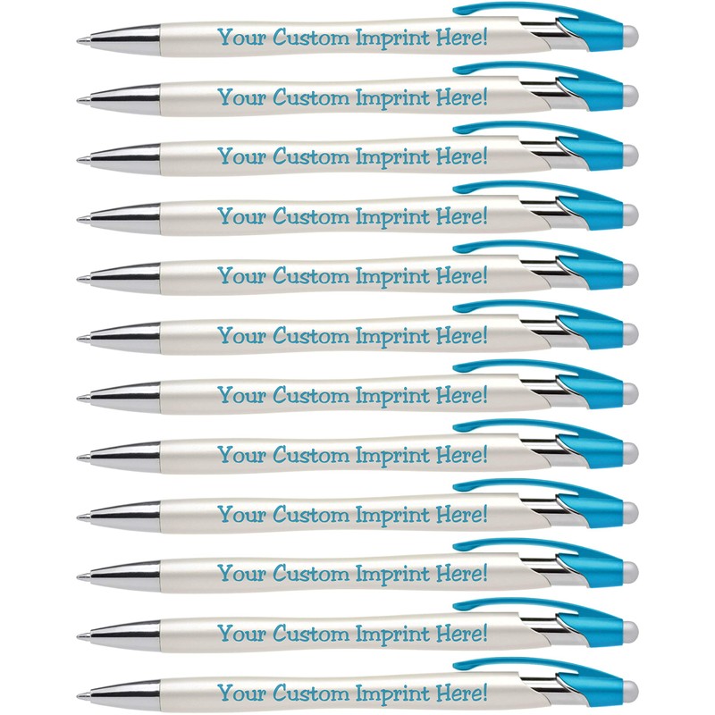 ExpressPen™ - Custom Pens with Stylus - The Pearl - Personalized Metallic Printed Name Pens with Black Ink - Imprinted with Logo or Message - Great Gift Ideas - 12 pack (Aqua)