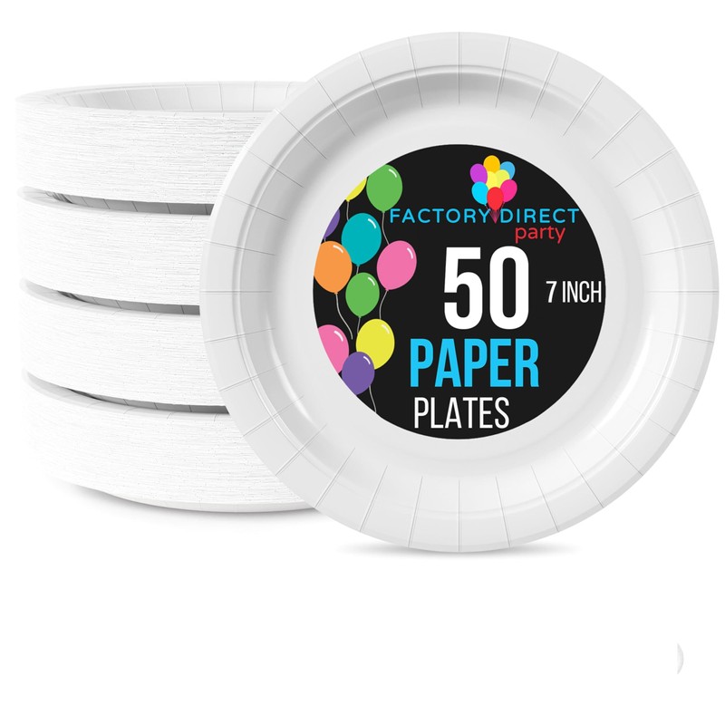 - What's Included: This set includes 50 white disposable 7-inch plates, perfect for dinner plates or salad plates. They also make great cake plates disposable and dessert plates disposable. These disposable dessert plates are great for satisfying your sweet tooth without the hassle of clean-up.