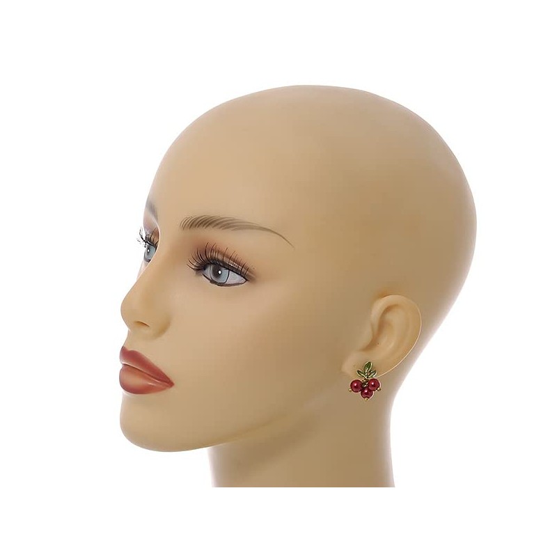 Exquisite Red Berry Floral Olive Green Enamel Stud Earrings - 20mm Drop