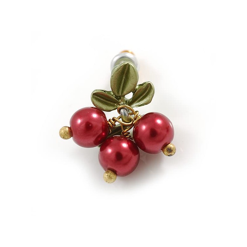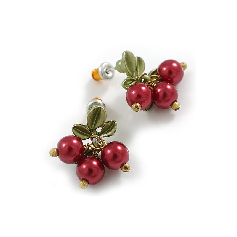 Exquisite Red Berry Floral Olive Green Enamel Stud Earrings - 20mm Drop