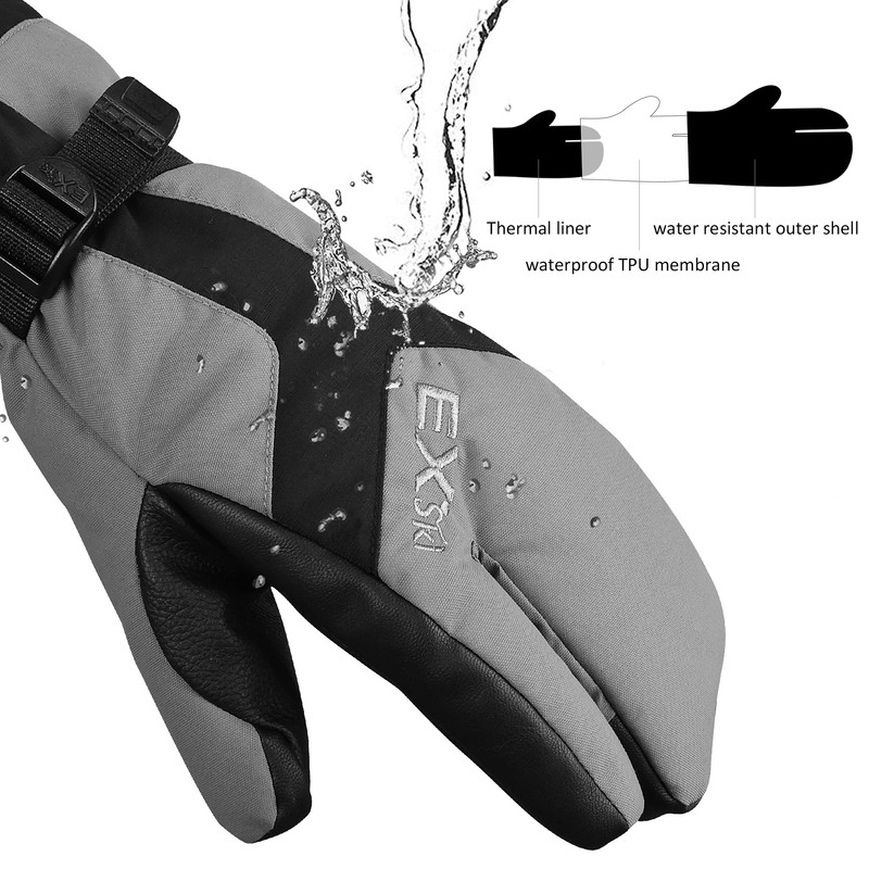 EXski Waterproof Winter 3-Finger Ski Gloves Warm Insulated Snow Mittens for Cold Weather Snowboard Snowmobile Grey XX-Large
