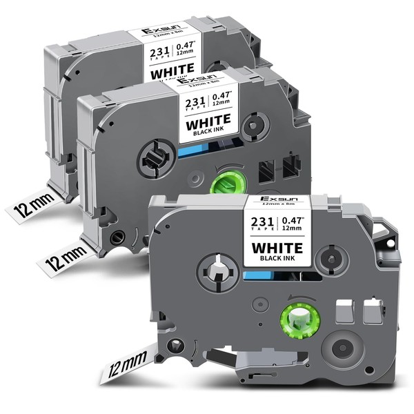 Exsun 12 mm 0.47 Inch Label Tape Compatible with Brother TZe-231 Tapes TZe231 Tz231 Tzc231 Label Tape for Brother P-touch PT-H105 H107 E100 D600 H100R H110 H101C H100LB H200 D4 000 00 White