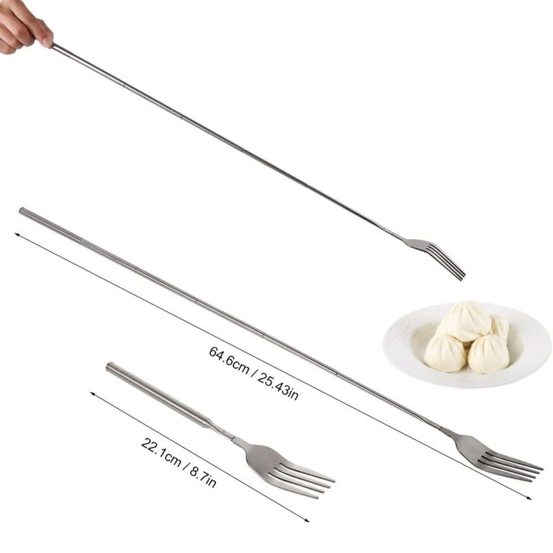 - Portable and Multifunctional: The extendable fork is compact when collapsed, easily fits into a backpack or kitchen drawer, ideal for traveling, camping or family gatherings