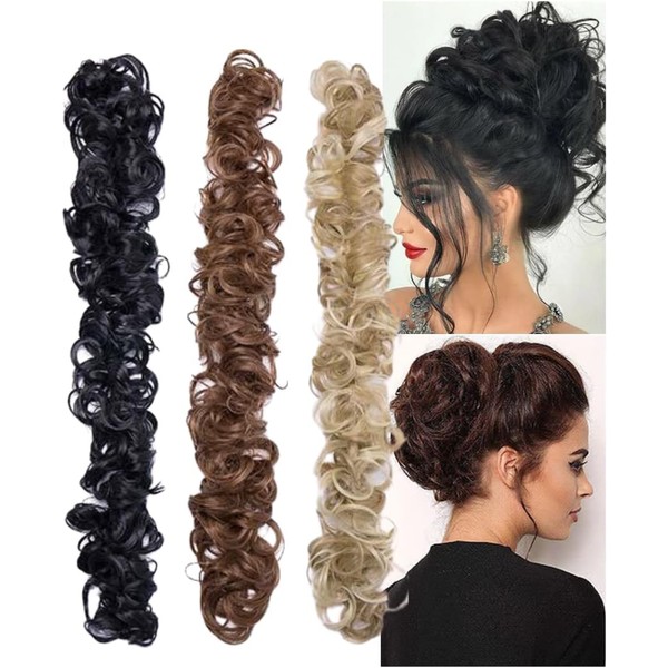 - Peinados mágicos para moños: el coletero para moño es flexible para hacer un peinado desordenado, cola de caballo lateral esponjosa, envuelve alrededor de la cola de caballo