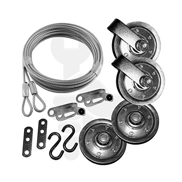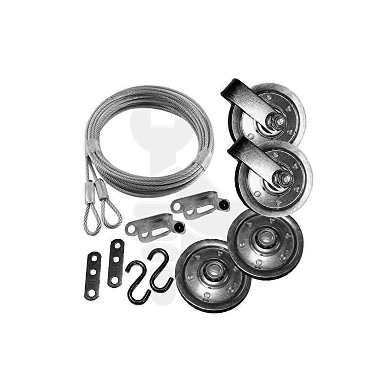 Extension Spring Pulley and Safety Cable Complete Garage Door Set for Ext Springs