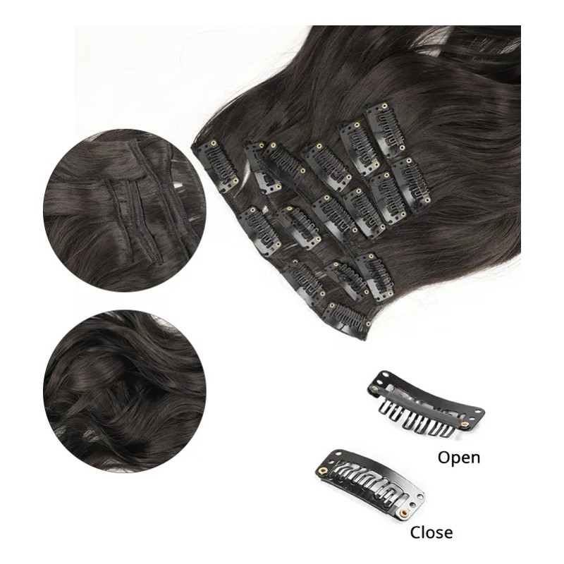 DIY Fun:Puedes decidir cómo asignar los clips a diferentes áreas según el volumen de tu cabello.Dependiendo de cómo se vea tu cabello normal, puedes hacer diferentes estilos como trenzas o colas de caballo.