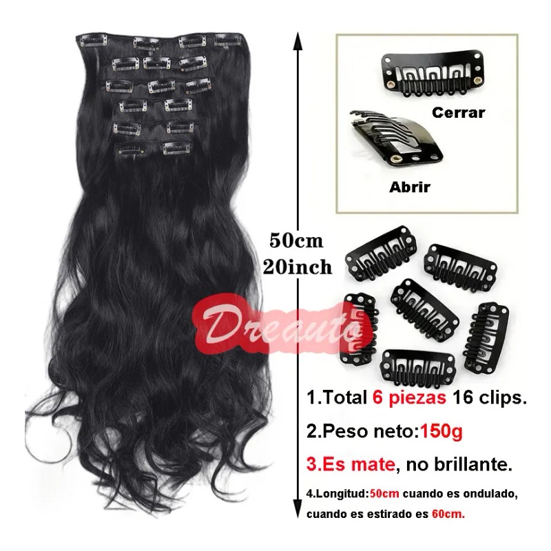 1 pieza: Pieza de 8 pulgadas (para la parte posterior de la cabeza) con 4 clips.