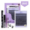 Extensiones de Pestañas Kit 156pcs B05 B&Q Clásicas Gruesas 8-18mm Negro Longitud Mixtas con Pegamento Removedor Curvatura D bqlash Kit Pestañas BQ