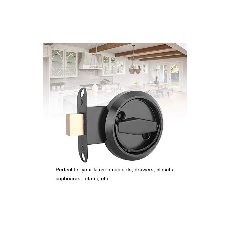 Exterior Door Knob with Lock Stainless Steel Door Lock with Handle Pull Ring for Cabinet Drawer Closet Door(Black)