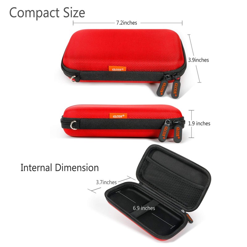 - Compact Size - Exterior size: 7.2 x 3.9 x 1.9 inches; Interior size: 6.9 x 3.7 x 1.4 inches. This small travel case is widely used for electronic gadgets organizer, like cell phone, bluetooth earpiece, hard disk, usb cable, memory card