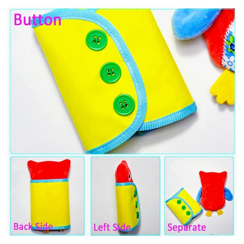 - You will Receive: 1 Button + 1 Zip + 1 Snap + 1 Lace Owl learn to dress doll toys