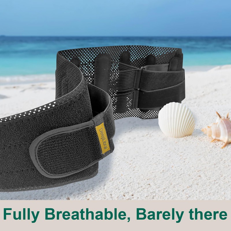- [Breathable and Adjustable] Our lumbar support belt is made from advanced mesh material that allows air to circulate close to your skin, creating a cooling effect and keeping sweat away. The lightweight and breathable design ensures comfort without retaining heat. Additionally, the outer elastic band with a high-quality hook-and-loop fastener offers a wide range of adjustability, so you can easily find the perfect fit for your body.