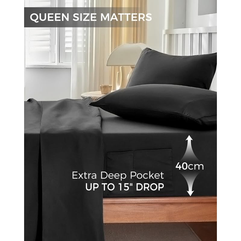 Extra Deep Pocket King Size Sheets Set - 4 Piece Ultra Soft Microfiber Bedding Set, Hotel Luxury Queen Size Fitted Sheet with Double Side Pocket - Wrinkle Free, Fade, Breathable (King, Black)