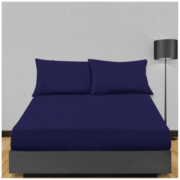 Extra Deep Single Fitted Sheet (91x190CM), Super Soft Poly Cotton Elasticated Corner Bottom Sheet, Plain Dyed 40CM Single Bedding Sheet, Navy