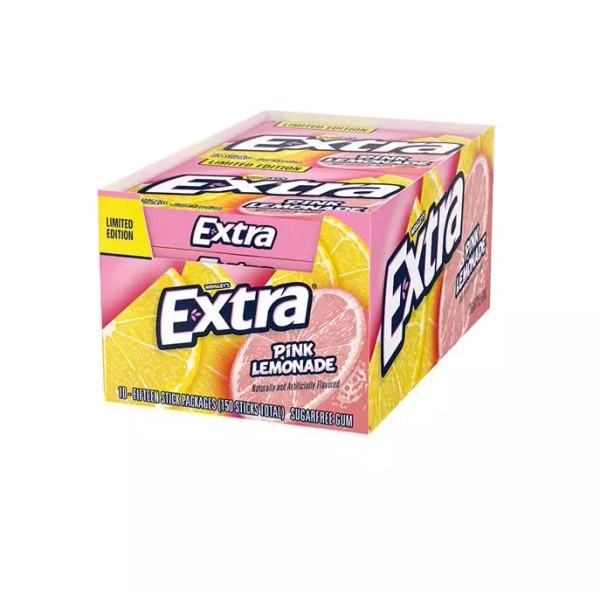 Extra Gum Pink Lemonade Sugar free Chewing Gum, 15 pieces (Pack of 10)