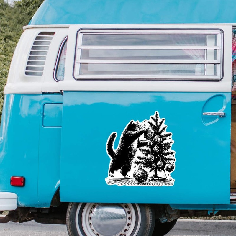 Extra Large 460mm 'Cat Wrecking Christmas Tree' Permanent Sticker Decal for Cars/Windows/Bins/Walls (DW00129247)