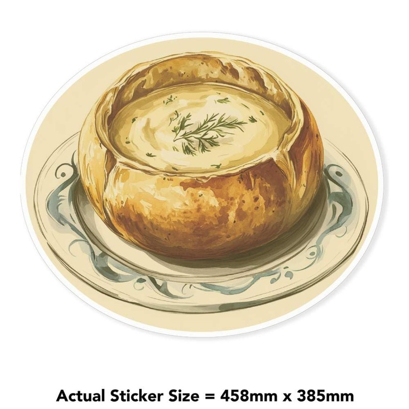 Extra Large 460mm 'Sourdough Bread Bowl Filled with Creamy Soup' Permanent Sticker Decal for Cars/Windows/Bins/Walls (DW00136087)