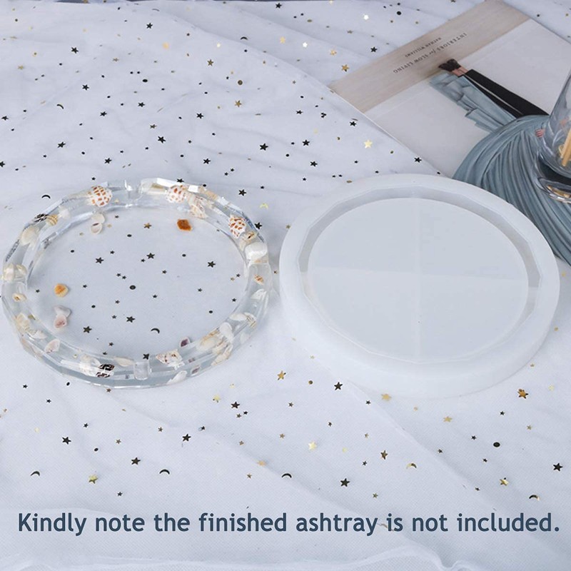 - 1 Pcs Large Round Polygon Ashtray Resin Mold: diameter 7.3" inches