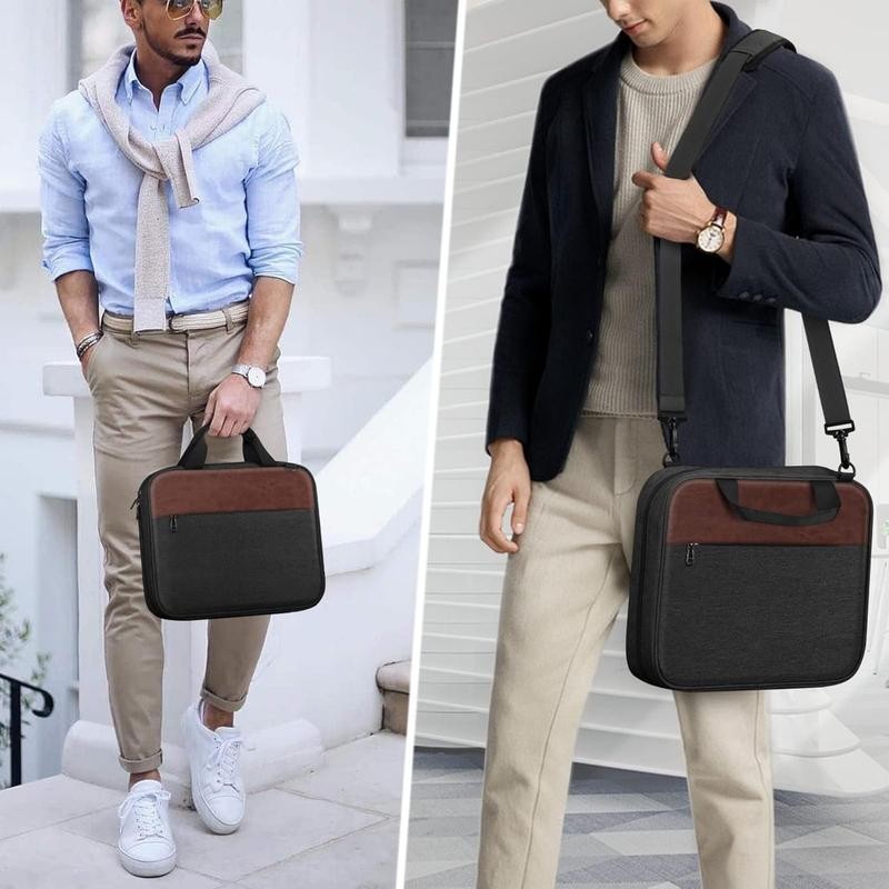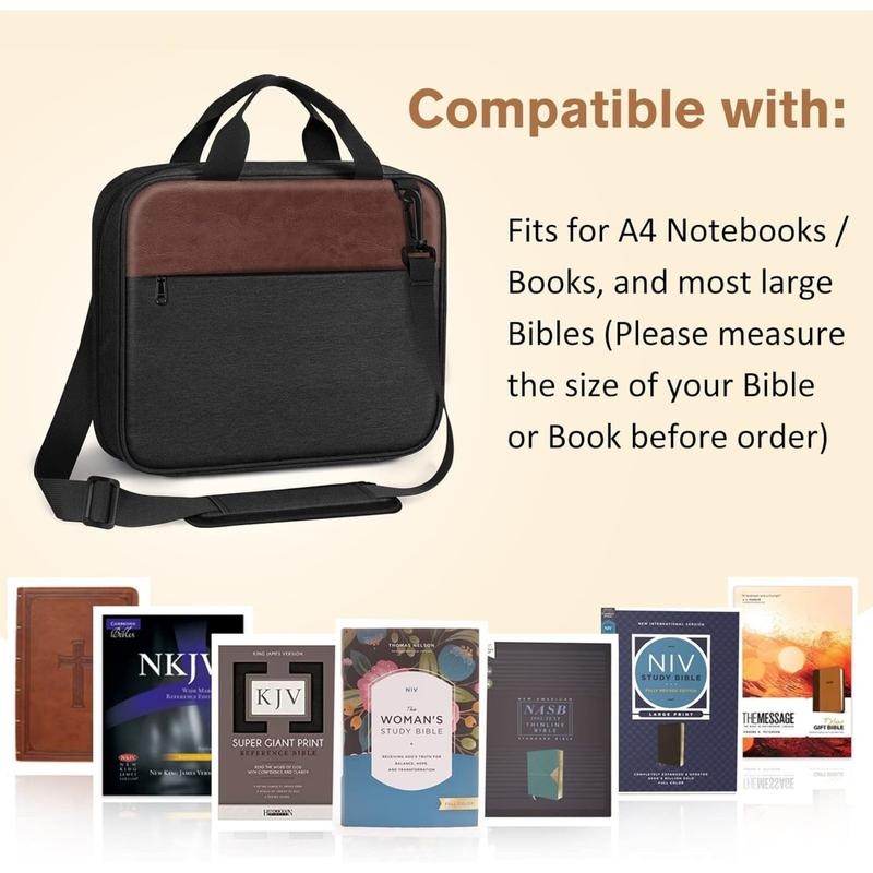 Extra Large Bible Cover, Carrying Book Case Church Bag Bible Protective with Detachable Shoulder Strap & Zippered Pocket, Gift for Men Women, Black & Brown - Color: black