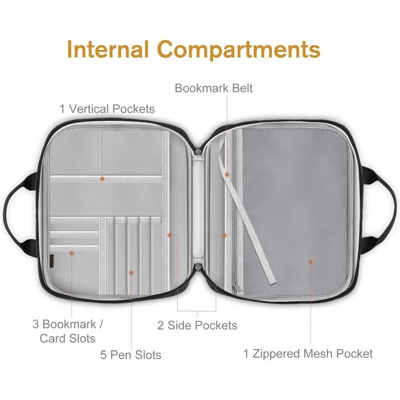 This Bible Cover has a front pocket, a back pocket, and multiple internal organization pockets, it can hold your pen, cards, bookmarks, notebooks in it.